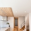 リビング空間とつながる吹き抜け空間により、どこにいても家族のつながりを感じられるように設計されています。勾配天井になっており、圧迫感がなく、解放感が抜群です。