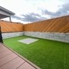 人工芝のある、開放的なお庭スペースが広がります。
