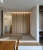 外観だけでなく、室内にも取り入れたルーバーデザインが特徴的なリビングルーム。