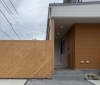 玄関周りには造作のルーバーフェンスを配置。