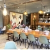 店内は広く、とてもおしゃれな空間です。4人掛けと2人掛けのテーブル席があり、真ん中には大きなテーブル席もあります。