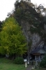 15時からの神迎神事が始まる前に、まず岩根寺へ。稗原川沿いを行くと荒々しく削られたような岩肌と色づき始めた大銀杏が目を引き、御本堂に近づくほどデイサイト節理の迫力に言葉を失います(写真の本堂手前のメンバーと比べてください)。