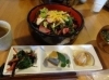 野菜の前菜3種、新鮮野菜のちらし寿司(古代米)、デザート、玄米コーヒー