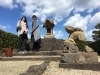 本殿には素晴らしい彫刻がたくさん! 拝殿入口に前後で向きが違う龍、本殿横には波兎、後ろにも龍がありました。そしてこちらにも島石で造られた高さ4mもの燈籠がありました。