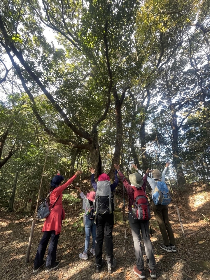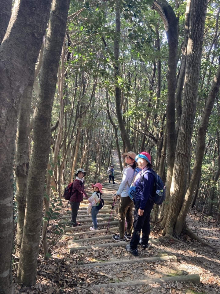 さて、この登山道は中国自然歩道として整備されています。海に近いにも関わらず、歩き進めると奥深い森の中を歩いているような気分になります。11月も中旬を過ぎているのですが、木々の葉は未だ青々としています。