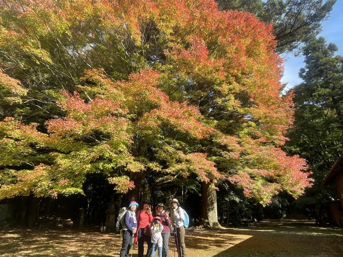 パワーをいただき、あともう少し。朝日寺が近づくにつれ、ちらちらと紅葉が目に入る。