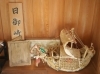 代表的なお祭りは1月7日の龍神祭で、藁で作った「竜宮船」にミカンを詰め込んで海に流し、海の神様に奉納するというものです。拝殿の中にはミニチュア版の竜宮船が飾られていました。