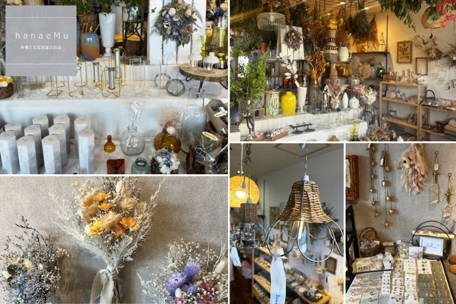 ドライフラワーや観葉植物、北欧雑貨など、センスあふれるアイテムが並ぶ【hanaeMu】さん。ナチュラルテイストからアンティーク調まで、多彩な雑貨が揃う魅力的なお店です♪